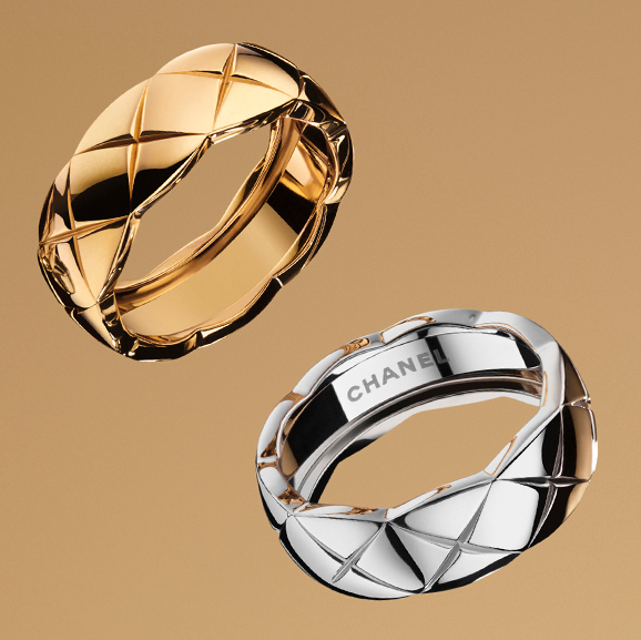 Découvrez les bijoux de la collection de joaillerie COCO CRUSH, disponibles en or jaune, en OR BEIGE et en or blanc, avec ou sans diamants. Une collection tout en rondeur et inspirée de l’emblématique motif matelassé CHANEL. |